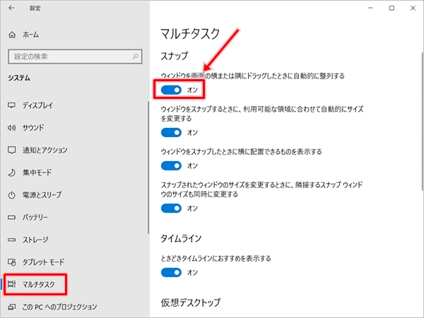 Windows10 ウィンドウのスナップ機能を設定 オン オフ する方法 Pc設定のカルマ